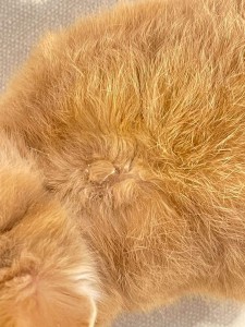 My little bun stayed with a family member and got fly eggs (not the scary ones) on the back of his neck. I took him back, shaved the spot on the back of his neck, removed all I could see and checked him all over for any more. I watched him closely for about 3 more days and he’s been him happy self. However, this morning I checked his neck where the fur is growing back and I noticed a lot of skin flakes.