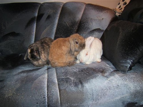 As far as my triple snuggle – I cheated – I put them like that & took the pics real quick before Busgy turned around & began humping Thumper (white male) again.