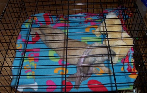 Poor Griffin will be confused- he lives in a dog crate, in the cats room, listens to the parrots whistle all day, and sleeps on a blanket that says “Dog”. I plan on moving him into the room with the other bunnies soon. I think I am no longer fooling anyone and they know he is somewhere in the house. Cotton and Schroeder have been leaving extra poos outside the cat room door- and I am pretty sure someone wee’d under the dining room table.
