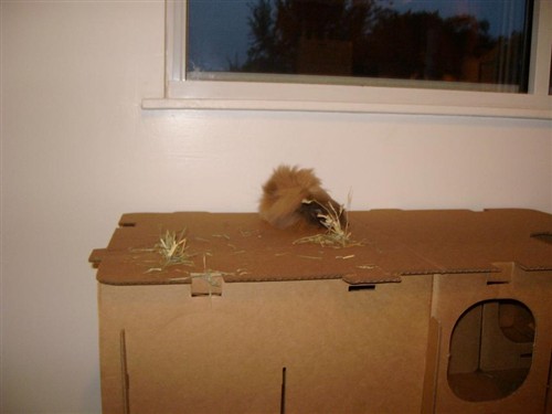 Well, the maze is a HUGE success. He loves it, as soon as I opened the box and started setting it up he was chin rubbing every inch of it. He’s a few pics of my Felonious loving his early birthday present!