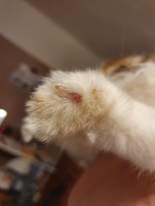 There is however a type of mites that like attacking the area around the nails first of all. I’m only mentioning it because sore hocks on the fore paws is unusual, and this seems concentrated to around the nails. With mites your see flaky skin around the nails though. Burrowing mites are found around the world, but how common it is in rabbits varies a lot between countries and regions. It’s not something we often see on these forums, just now I can only recall one case and that was in the Philippines.