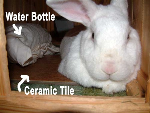 I also have a new tip that I have yet to add to that section. I found that if you wrap water bottles (large or small) in a towel, they stay cool longer, and as the bottle sweats or if it leaks, the towel comes in handy, and it also prevents your bunny from chewing on the bottle, however, if your bunny likes to chew on towels and blankets…well, then this may not work for you.