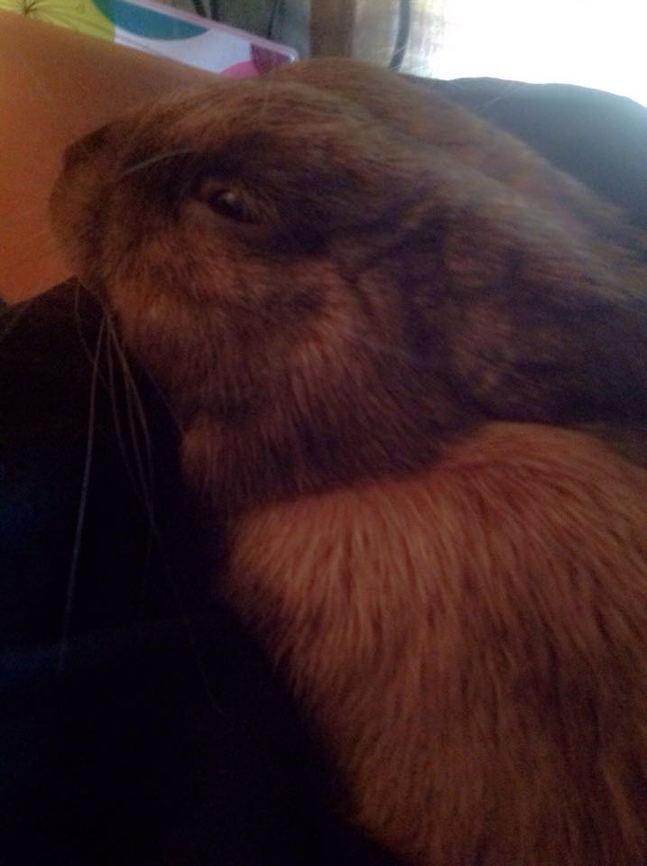 The rabbit I’ll be asking about today is Grove. I got Grove about a year or so ago while I was out and about and saw a person selling rabbits in abysmal condition. The mother, a lionhead, was well kept, but all the babies looked awful. The sign advertised them as “nice and fat bread-fed rabbits”. Using these poor babies as food for snakes or people is unfortunately more common than keeping them as pets where I was at the time, so my heart sank as it usually does. I got out of my car, and when I came to them they understandably all backed off and thumped at me, aside from one, who toddled right up to me like an idiot. Self-preservation skills and general survival instinct = nil.