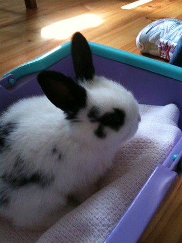Here is one of Rabbit in my daughters baby doll carrier. 4 weeks old.