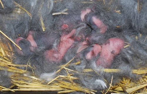 There is a way to determine that the mother is indeed feeding the offspring. Did the mother rabbit pull fur? Did she shred papers, or gather hay or rip up carpeting (if housed indoors) in an attempt to “make a nest?” Mother rabbits usually make a nest any time between a few days prior to the birth up to the day of birth itself. She may also do so without an actual pregnancy.”