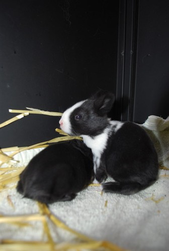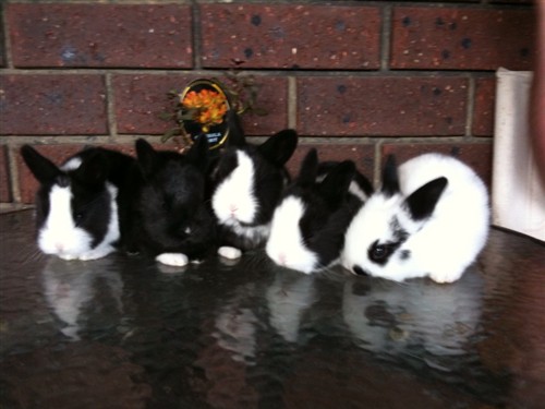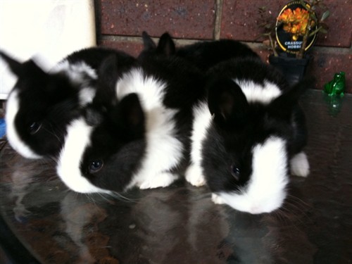 The one in the middle of the picture has exactly the same markings as Mr. Bunny. Even the spot on his nose. And there is one that is all black, with a white nose. so sweet.