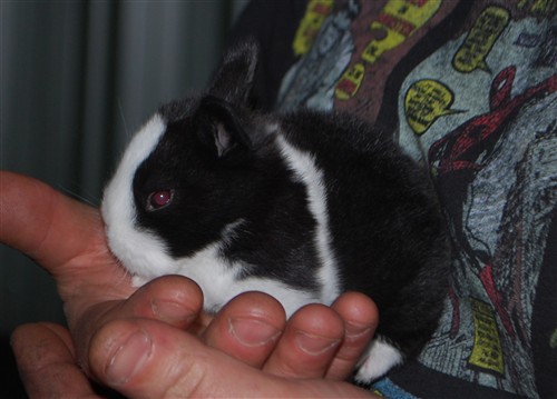 The rabbits Dad is JoJo a Jersey Woolly.(dark grey and fluffy) (Very hard to get a hold of, they are very little rabbits)