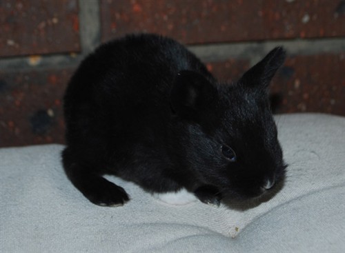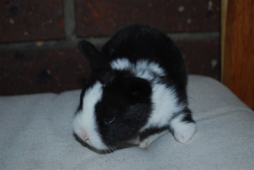 The rabbits Mum is Hop Hop a Dutch rabbit (dark brown with white patches, not fluffy) bigger than father, very gentle temperment, very quiet.