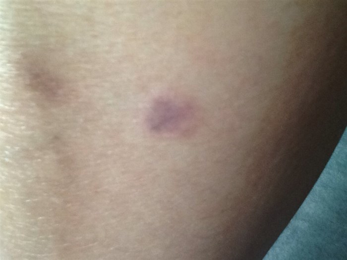 He has a solid white coat and i’ve never seen dander or the black specs displayed in the photos that came up. The bald patch shows short hair trying to grow back but it never gets far.