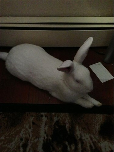 Let me start off by telling you about my baby back home. He’s a New Zealand White, with the most affectionate, loving personality I, and anyone else, has ever seen in a rabbit. He loves to follow people, to lay near them, nudge them for affection etc.