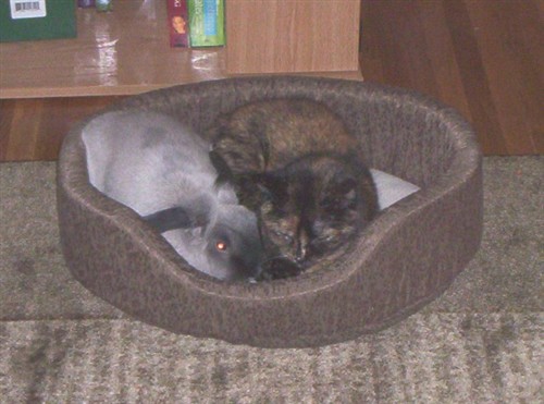 Welcome! Looks like the kitty and bun are well bonded. A lovely sight!