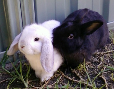 This is a pic of Flopsy and Stu when they first met yesterday … Flopsy is the new one, the white one… Stu is just taken by her lol.
