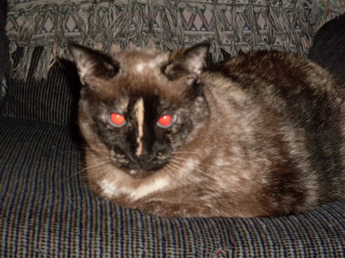 This is my boy, Andy. He’s about 9 years old. He belonged to our former roommate’s brother who couldn’t keep him. They threatened to send him to the SPCA so we took him. He’s very sweet and cuddly. He reminds me of a cat that would be good for a 6 year old girl; I can just picture him patiently sitting in a baby stroller with a bonnet on.