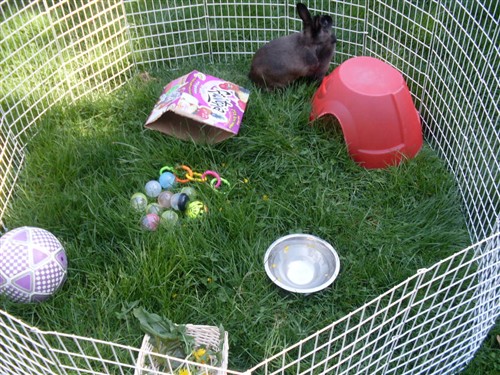 Set up the x-pen outside because its such a beautiful day    twix is loving it!