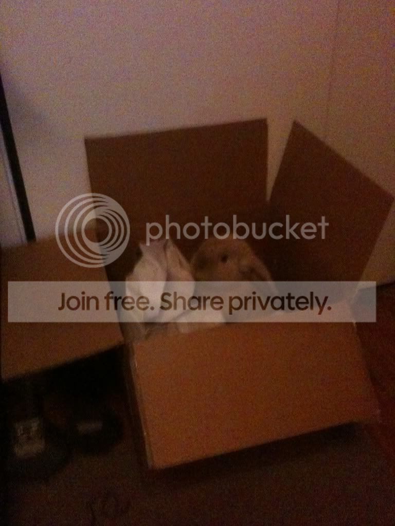 yea, thats a happy bunny. Its kind of weird, his coat seems to change color a bit in the light, it gets really light in bright light, and then when its dark his coat gets darker and he gets a big white belly.