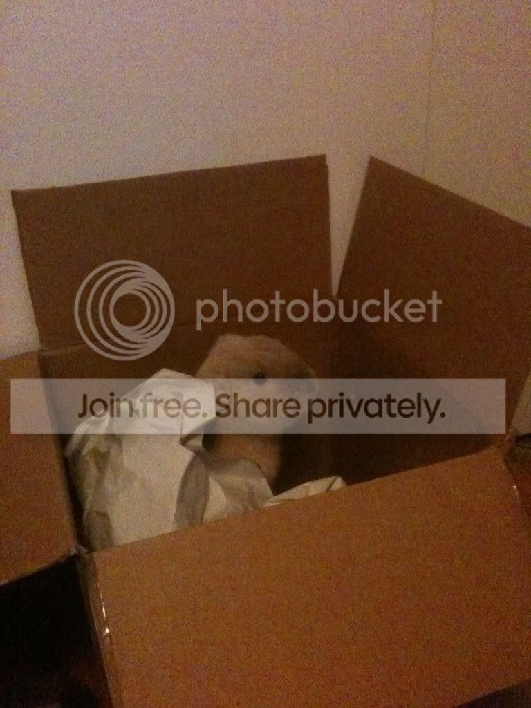 He’s really cute! I love how his face is a little darker. What a snooper! “What dad? No more gifts in here for me????”
