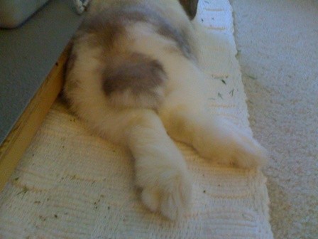 The problem is Coconut lives in my room so it’s so hard to keep him off the bed. I’ve been putting him in his NIC cage at night when I sleep and also when I’m at work. I will try the tin foil or car shade! Thanks!Jaguara- they do have the cutest butts! and don’t forget their huge feet!