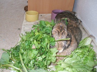 If I give Sammy about 2/3 of her cabbage crock bowl full of greens, she leaves half until the evening.