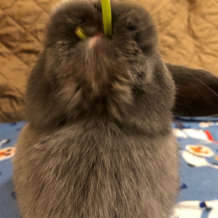 My bun always gets his chin wet when he drinks, but won’t drink from a water bottle either. I might have to try experimenting with different amounts of water as well