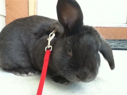 Like Sarita said, on this forum we recommend that harnesses/leashes do not be used on bunnies. Before I learned more about bunnies I did also try to use a harness on my bunny, but it can really be quite dangerous. Although they might seem calm on the harness, bunnies are prone startle and bolt at any time from a sudden unexpected sight or sound (which there are plenty of outdoors)…if this happens while they’re on the harness, they can become entangled and severe injury to the back or legs may result. I know it sounds like a worst-case-scenario sort of thing, and it’s easy to think “oh my bunny doesn’t startle easily, so it’ll be fine”, but all it takes is one moment for injury to occur and we have had members here who have been through this heartbreaking situation. Just something to think about!