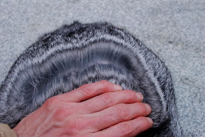 If you blow on Muffin’s fur, do you see rings of alternating light and dark? That’s the hallmark of the chinchilla color. 🙂 I was thinking that’s what he looks like as well.  I think the chinchilla color can be on other breeds as well.