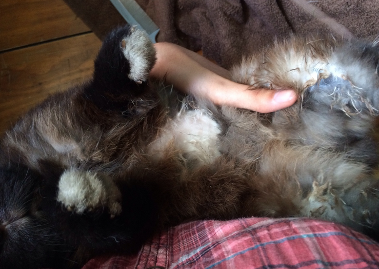 It’s.. both??? It’s very very short, fine white fur and the skin underneath it looks fine – no redness or anything.