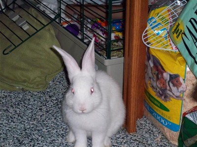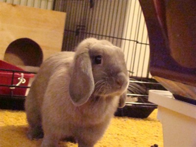 3) Lucy – She’s a lop. She is about 2 years old. We go her back in Feburary from her old owner who was not able to affored to keep her any more. Lucy was born at a collage and was going to be dinner for a snake until her old owner saved her. Lucy is like having alittle dog around, she comes to her name and well follow you around.