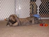 He is a year old, a satin.. and what a clown! he is a big “snuffler’.. he sniffs and sniffs and sniffs everything!! I just got an air conditioner for our room. he has tiles to lay on, frozen water bottle, ice water.. you name it.. I am his slave.. I let him out of our room in the morning and evening.. I must watch him all of the time.. he gets into everything. so very curious about everything. I’m so in love with the little bugger..