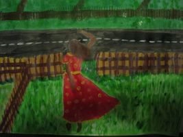 My 1st attempt at a person, she ended up facing the other way because a face was waay too hard for me to paint.