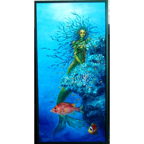 OH and I painted a mermaid on the bathroom door. Bob saw it and wanted me to paint his wall at his house the outside wall . So I painted ocean mermaids shells sea turtles dragonflies and a castle in the sky for him. OH and some dolphin and a yacht too. Got paid real good $ for that too.