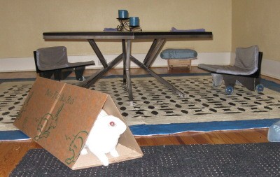 Yesterday I opened the room back up to the buns and last night J and I moved the table back in. We also gave the buns their new “Ton of Fun Bun Run”!