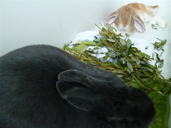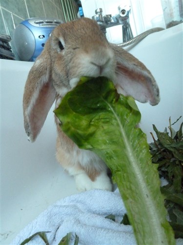 Put towel in bath, and lots of willow branches. Henry has been a bit bonkers this morning! I have been away for a few days and I think I underestimated the food rations of endives and salad to give him (by my excellent bunnysitter) so he was craaaazy hungry for anything other than hay… ![]()