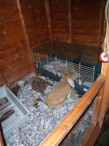 For those new to the site who don’t know our set up, this is just a sheltered, sleeping hutch, which has a hole in it so they can come and go as they wish (they are NOT shut in it – it is FAR TOO SMALL for a closed in home, even for a dwarf rabbit!)