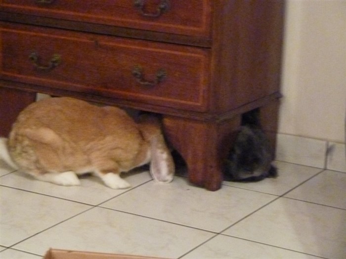 Nibble time, I withdraw glove and Henry gives Zou a bunny butt !! (Notice my lovingly placed and flattened out towel earlier! :ermm)