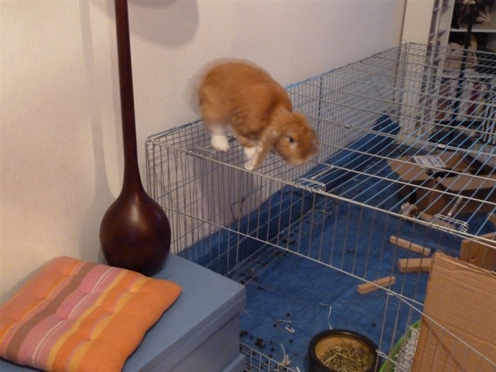 Now everything, EVERTYTHING is too small…. I have to change EVERYTHING…. i’ll go and get a bigger litterbox tonight and look out for bathroom area (kitchen cabinet, and condo (old wooden buffet) and sleeping hutch (tv cabinet?) ASAP and enlarge the hay rack