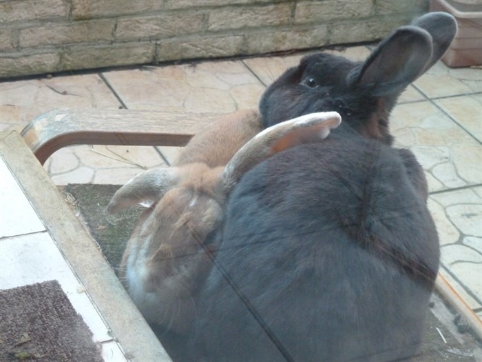 Today I put them outside and they groomed and groomed and mutually “bunny-69-groomed” each other until their tongues must have been exhausted!! It was so sweet to watch..