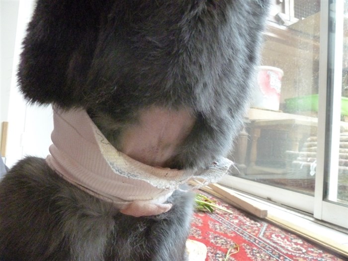 Then take full advantage of drugged-up bunny (check out those eyes! “heeeey man”!) and syringe away !! Make the most of it for tomorrow will not be so simple (a less drugged bunny!)